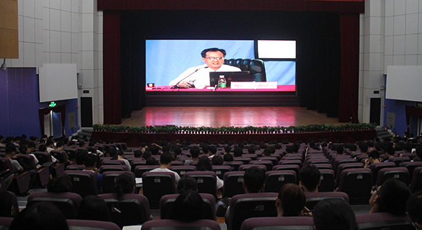 按照省委部署要求,根據(jù)省委宣傳部、省直機(jī)關(guān)工委、省委教育工委、省國資委進(jìn)省內(nèi)高校、機(jī)關(guān)、企業(yè)舉行廣東經(jīng)濟(jì)形勢會報告會工作方案統(tǒng)一安排,5月29日下午,學(xué)校在湖光校區(qū)主樓多功能廳舉行了廣東經(jīng)濟(jì)形勢報告會。本場報告會的宣講專家為廣東經(jīng)濟(jì)形勢報告團(tuán)成員、省人民政府發(fā)展研究中心黨組成員、副主任譚炳才研究員。校黨委副書記向獻(xiàn)兵主持報告會,全校副處以上干部,經(jīng)濟(jì)學(xué)院、管理學(xué)院、馬克思主義學(xué)院教師,全體輔導(dǎo)員和部分學(xué)生代表聆聽了報告。另有部分學(xué)生代表在藝術(shù)學(xué)院實驗劇場分會場收看了報告會實況轉(zhuǎn)播。