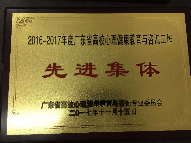 11月15日至16日,2017年度廣東省高校心理健康教育與咨詢工作委員會年會在江門鶴山市舉行。廣東省教育廳領導、廣東省高校心理健康教育與咨詢專業(yè)委員會全體成員及來自省內(nèi)各高校近300名代表參加了本次會議。我校在心理健康教育工作方面得到與會領導、專家的充分肯定,榮獲“2016-2017年度廣東省高校心理健康教育與咨詢工作先進集體”稱號。另外,劉國華老師論文《15000名大學生強迫癥狀調查》、《1987年以來我國大學生自殺研究文獻計量分析》和蘇嬋娟老師論文《高校大學生心理疾病的預兆及干預機制研究》獲得論文評比一等獎。