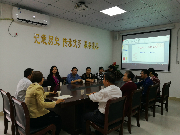 儀式結束后,在詹衍玲館長的帶領下,來賓參觀了我校新檔案館及校史館。之后,在閱覽多功能廳召開研討會。會議針對檔案信息化建設策略相關事宜展開了討論,詹衍玲館長首先介紹了我校檔案館建設的具體情況,以及新時代檔案工作面臨的問題及對策。接著,湛江市檔案館楊凱航局長講話,他對我校檔案館的建設和管理工作給予了充分肯定,并對我館的工作提出了指導性的意見。湛江市檔案局李江副局長以及各兄弟學校檔案部門負責人結合本單位情況和工作經驗,對相關問題進行了充分的討論。會議認為,檔案工作者要牢記使命,抓住學校正在建設智慧校園的機遇,做好電子文件的歸檔管理與前端控制,積極推進檔案管理系統與學校辦公OA系統的對接等工作,為保護學校的記憶工程而不懈努力奮斗。