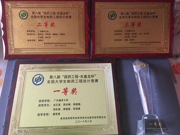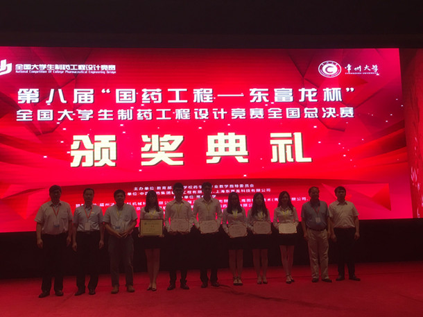 由教育部高等學校藥學類專業教學指導委員會主辦、中國醫藥集團聯合工程有限公司與上海東富龍科技股份有限公司共同協辦、常州大學承辦的第八屆“國藥工程-東富龍杯”全國大學生制藥工程設計競賽在常州舉行。我校三支參賽隊伍分別榮獲全國一等獎,二等獎,三等獎,再創佳績,在整個廣東省的所有參賽隊伍中排第一名。