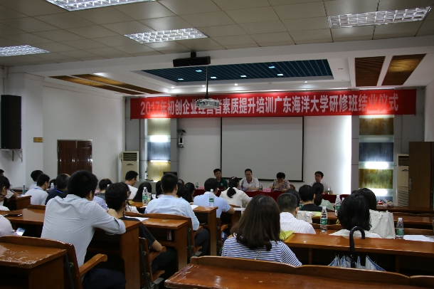 6月6日下午,2017年廣東省初創企業經營者素質提升培訓廣東海洋大學研修班在霞山校區圖書館報告廳舉行結班儀式。黨委副書記、紀委書記彭權群、廣東省人社廳創業指導處副處長俞劍鋒,湛江市人社局副局長周新發,招生與就業指導中心主任鄭一鳴以及30名培訓班學員參加了結業儀式。結業儀式由鄭一鳴主持。