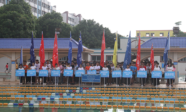 為深入貫徹實施《全民健身條例》,推動我校全民健身活動蓬勃發展,豐富校園體育文化,彰顯我校海洋特色,增進各單位之間、師生之間的交流和友誼,營造良好的全民健身氛圍,6月2日,為期一天的廣東海洋大學第十二屆游泳運動會在湖光校區游泳場隆重舉行。學校黨委副書記、校長葉春海,副書記向獻兵,副書記、紀委書記彭群權等出席了游泳運動會的開幕式。向獻兵主持開幕式,彭群權致開幕詞,葉春海宣布游泳運動會開幕。