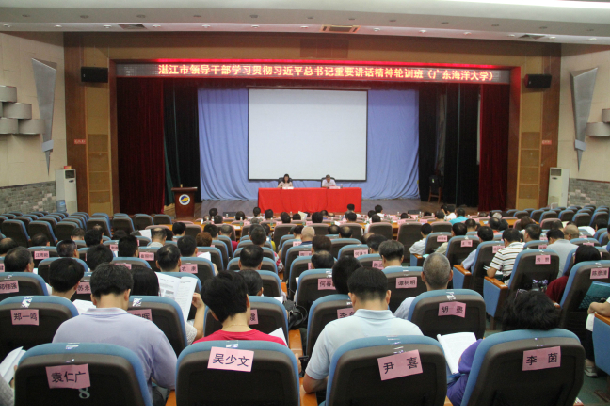 兩天的學習研討中,學員們認真學習研讀習近平總書記重要講話的原文,觀看了湛江市委書記鄭人豪同志在全市縣處級主要領導干部學習貫徹習近平總書記重要講話精神專題研討班開班式上的動員講話視頻和市長姜建軍同志在結業式上的總結講話視頻,學員們結合學校和崗位實際就深入學習貫徹總書記重要講話精神展開了熱烈討論。結業式上,農學院副院長陳進軍同志、研究生工作部副部長陳漢能同志、經濟學院副院長居占杰同志、海洋與氣象學院黨委書記宋雅同志分別作了交流發言。