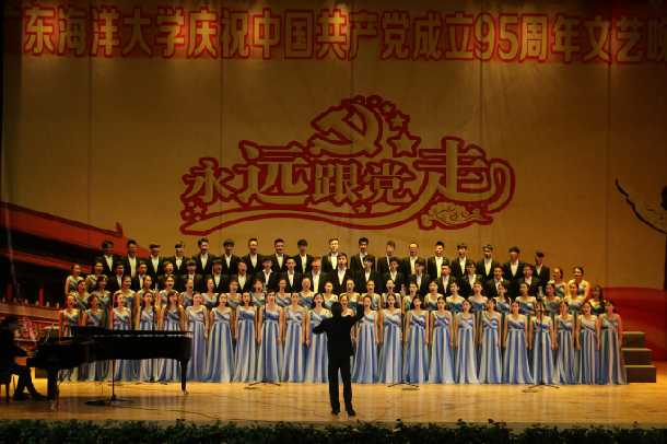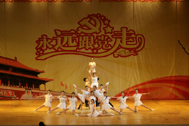 晚會(huì)在合唱《沒有共產(chǎn)黨就沒有新中國(guó)》的歌聲中拉開帷幕。通過《星火燎原建偉業(yè)》、《紅星滿天耀中華》、《高舉旗幟跟黨走》三個(gè)篇章,回顧了中國(guó)共產(chǎn)黨從無(wú)到有、不斷發(fā)展壯大的光輝歷程,展現(xiàn)了全國(guó)人民在中國(guó)共產(chǎn)黨的領(lǐng)導(dǎo)下取得的巨大成就。群舞《活著1937》,通過光影變換,重現(xiàn)了南京大屠殺的腥風(fēng)血雨,一聲吶喊表達(dá)了中國(guó)人民對(duì)民族獨(dú)立、國(guó)家富強(qiáng)的殷切期望;話劇《孤礁上的五星紅旗》,展現(xiàn)了解放軍官兵離家萬(wàn)里,不畏環(huán)境艱苦,堅(jiān)守島礁的高尚情懷;歌伴舞《永遠(yuǎn)跟黨走》,抒發(fā)了我校師生的愛國(guó)愛黨愛校的堅(jiān)定決心。