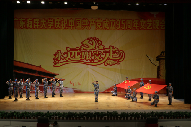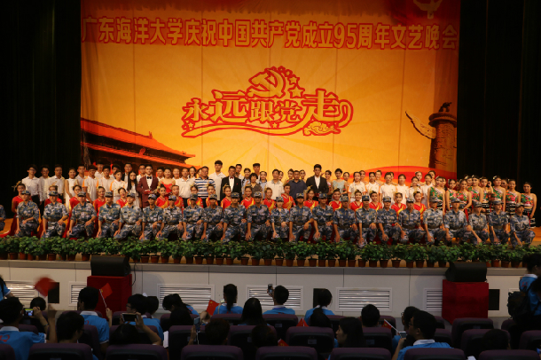 6月25日晚,由校黨委組織部、校團(tuán)委、中歌藝術(shù)學(xué)院共同舉辦的“永遠(yuǎn)跟黨走”——慶祝中國(guó)共產(chǎn)黨成立95周年晚會(huì)在中歌實(shí)驗(yàn)劇場(chǎng)舉行。學(xué)校黨委書記關(guān)志強(qiáng),黨委副書記張?zhí)m英,黨委副書記、紀(jì)委書記向獻(xiàn)兵,學(xué)校職能部門領(lǐng)導(dǎo)、二級(jí)黨組織書記、副書記,湛江市少林學(xué)校董事長(zhǎng)黃治武,少林學(xué)校副校長(zhǎng)邱令徐等嘉賓和我校師生代表共500余人觀看了晚會(huì)。