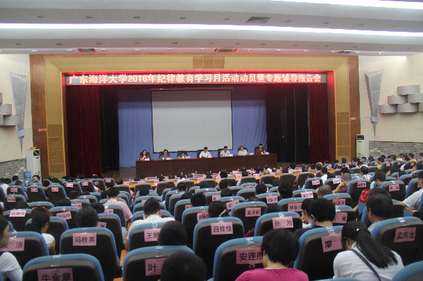 9月6日下午,學校在湖光校區教學主樓多功能廳召開2016年紀律教育學習月活動動員暨專題輔導報告會。學校領導關志強、葉春海、張蘭英、向獻兵、陳澤球、劉東超、高秀梅出席大會,全校副科以上干部共計400余人參加了會議。校長葉春海主持會議。