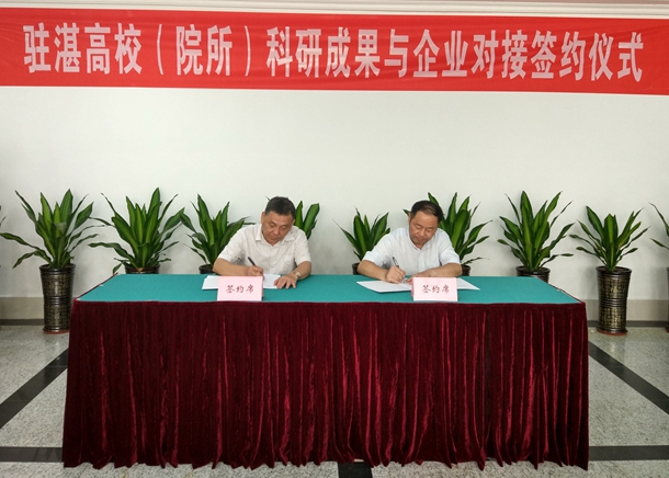 會前,科技處處長洪鵬志在駐湛高校(院所)科研成果與地方企業對接會上代表學校對“多鱗鱚(沙錐魚)全人工繁育”等10項關鍵技術的成果進行了推介,并分別代表食品科技學院、工程學院與湛江市經濟和信息化局簽訂了“農副產品加工和食品產業科技合作框架協議”、“裝備制造業領域戰略合作框架協議”。與會政府部門及相關企業代表對我校科技成果表現出濃厚興趣,希望進一步加強合作、共謀發展。