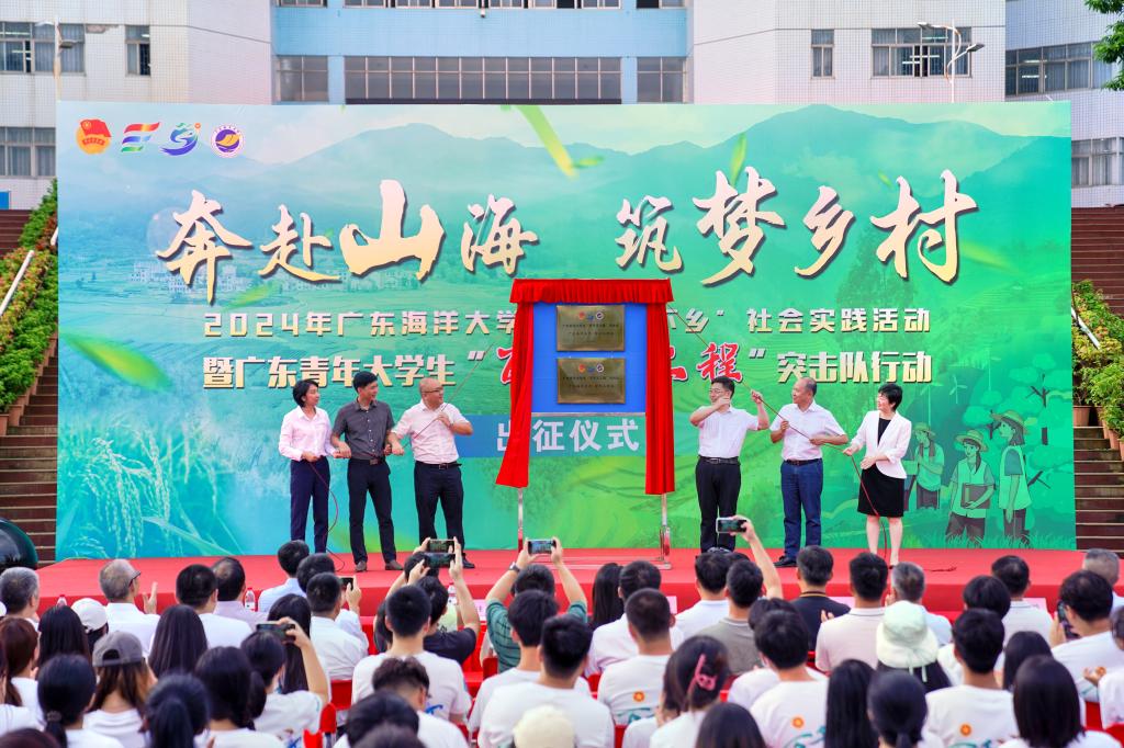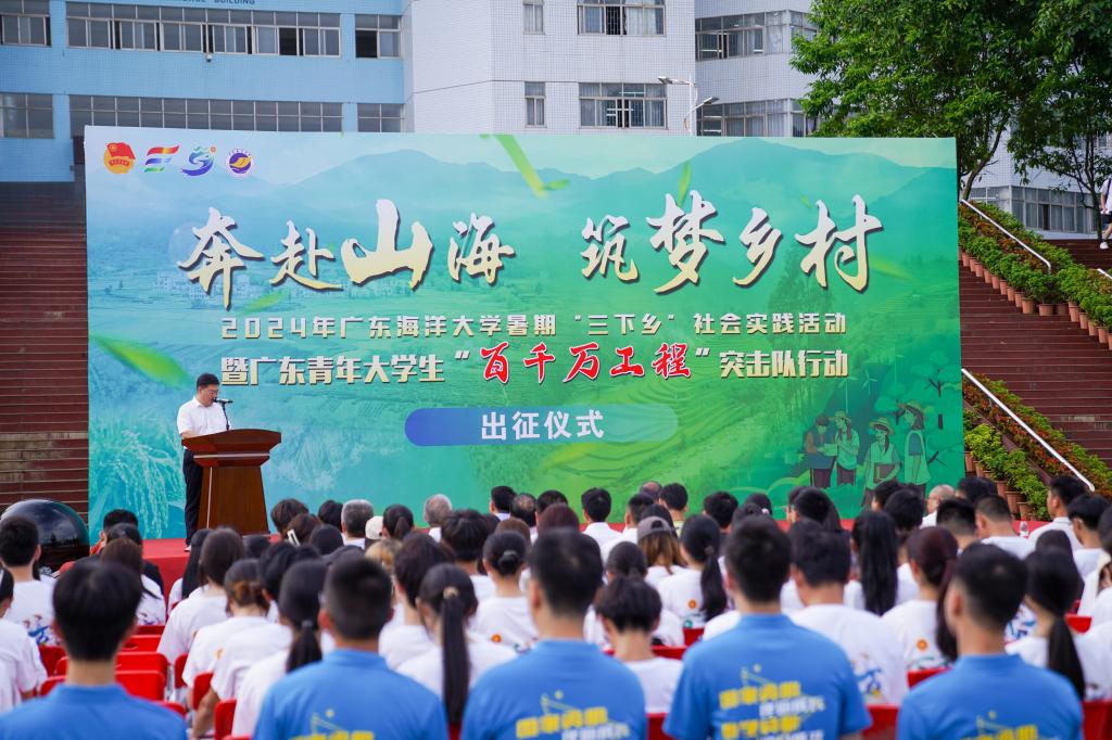 6月26日下午,“奔赴山海,筑夢鄉村”2024年廣東海洋大學暑期“三下鄉”社會實踐活動暨廣東青年大學生“百千萬工程”突擊隊行動出征儀式及“青春運動日記”活動在湖光校區海洋廣場舉行。學校黨委書記楊洲,黨委常委、副校長鄧逢光,團湛江市委書記譚凌,團雷州市委書記林琰佳,團徐聞縣委書記彭幕,學校黨委學生工作部部長鄭一鳴,各學院分管學生工作領導、團委書記,社會實踐團隊代表,青馬鴻鵠學員及學生代表共1000余人參加活動。活動由校團委書記袁路主持。