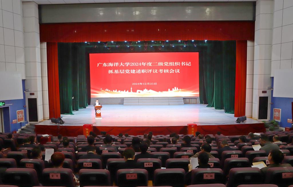 12月25日,學校在湖光校區實驗劇場召開2024年度二級黨組織書記抓基層黨建工作述職評議考核會。學校黨委書記楊洲主持會議。學校黨委副書記譚平,黨委常委、副校長周昌仕,黨委常委魯義善,黨群部門主要負責人、二級黨組織書記、學院院長,部分“兩代表一委員”、基層黨員干部和師生代表參加會議。陽江校區設分會場線上參會。