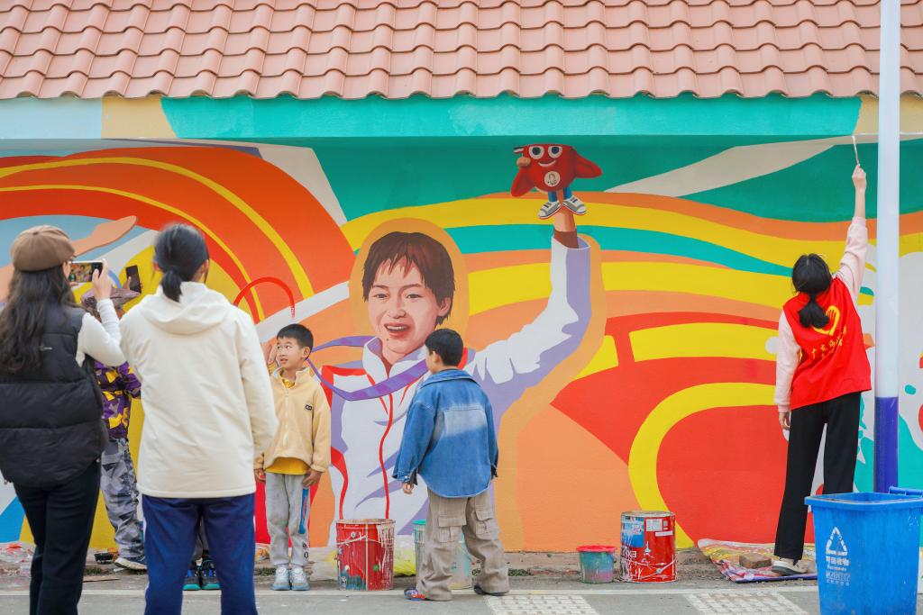 活動前夕,校地領(lǐng)導(dǎo)帶領(lǐng)麻章鎮(zhèn)和區(qū)教育、文旅等部門多次到現(xiàn)場調(diào)研,協(xié)調(diào)溝通,利用該村的歷史沿革和湛江“跳水之鄉(xiāng)”的深厚底蘊(yùn),結(jié)合當(dāng)?shù)靥厣N養(yǎng)產(chǎn)業(yè),進(jìn)行美麗鄉(xiāng)村建設(shè)規(guī)劃。活動期間,突擊隊(duì)員們揮毫潑墨,以全紅嬋的跳水瞬間為靈感,在邁合村小學(xué)的外墻上創(chuàng)作了一幅幅栩栩如生的墻繪。這些畫作不僅有展現(xiàn)全紅嬋“水花消失術(shù)”的颯爽英姿,還有富有湛江本地特色、鄉(xiāng)土氣息的金鯧魚、國寶紅樹林、中華白海豚、湖光巖世界地質(zhì)公園……為邁合村增添了一道亮麗的風(fēng)景線,墻繪作品得到了村民的一致好評,也吸引了眾多游客前來駐足觀賞、拍照打卡。