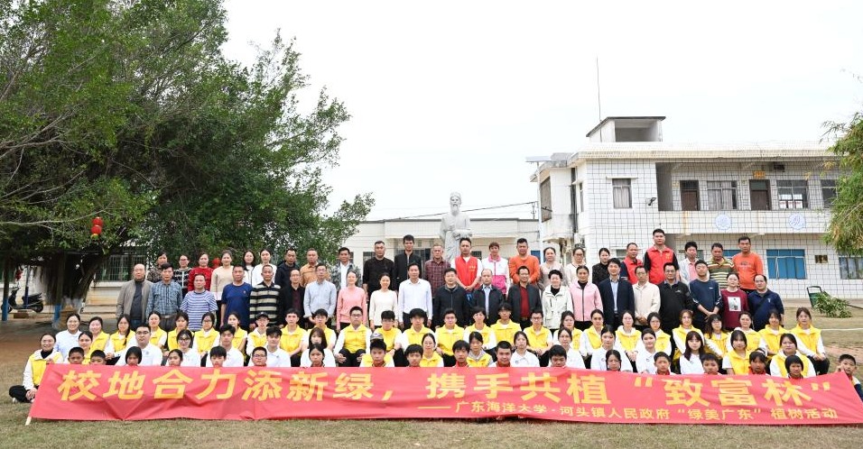 在河頭鎮雙村小學,我校師生與當地干部群眾組成“幫扶對子”,揮鋤挖坑、扶樹填土、澆水灌溉,將學校科研成果“海大4號”菠蘿蜜樹植入沃土,一個更加綠色、和諧的鄉村畫卷正在徐徐展開。學校今年計劃支持河頭鎮種植5000棵菠蘿蜜樹苗,目前1500棵已扎根田西村、吳良村和山域村沃土,活動當天種植了330棵,預計4年后將迎來首個豐收季。