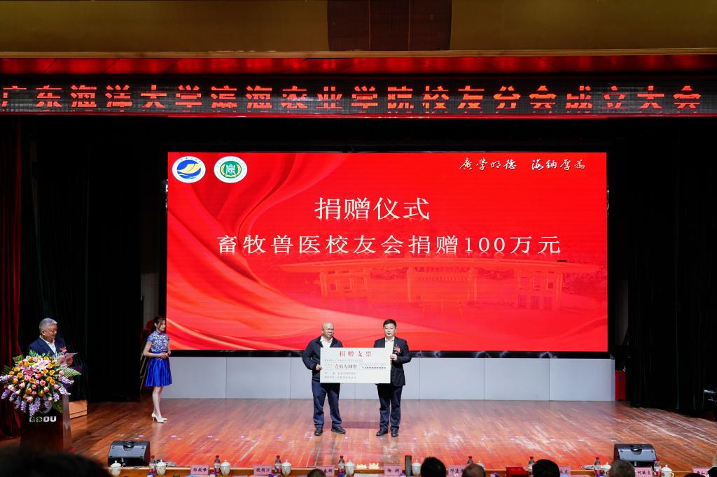 隨后舉行了校友和合作企業捐贈儀式,楊洲代表學校接受捐贈并頒發捐贈證書。畜牧獸醫校友會捐贈100萬元;曾敏、潘麗媚校友捐贈90萬元;世紀云天(海南)投資集團有限公司捐贈20萬元;江西新瑞豐生化股份有限公司捐贈20萬元,合計總捐款達230萬元。