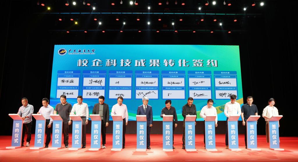 活動(dòng)現(xiàn)場還舉行了校企科技成果轉(zhuǎn)化簽約儀式。學(xué)校6個(gè)海水品種(硇洲族大黃魚、章紅魚、南美白對(duì)蝦、扇貝、馬氏珠母貝、生蠔)科研團(tuán)隊(duì)負(fù)責(zé)人代表學(xué)校分別與企業(yè)簽訂合作協(xié)議,共同圍繞水產(chǎn)種業(yè)領(lǐng)域的技術(shù)創(chuàng)新、成果轉(zhuǎn)化和產(chǎn)業(yè)化應(yīng)用開展深入合作。通過共建研發(fā)平臺(tái)和技術(shù)攻關(guān)團(tuán)隊(duì),整合高校科研資源與企業(yè)的市場優(yōu)勢(shì),推動(dòng)產(chǎn)學(xué)研深度融合。