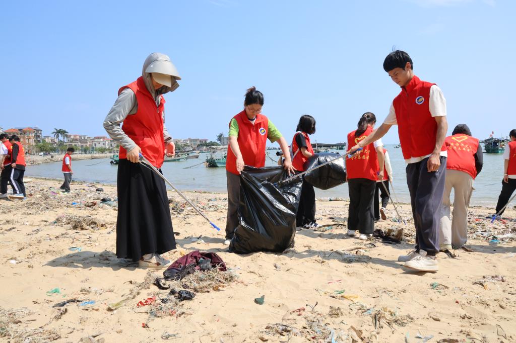 在活動現場,志愿者們與參與者攜手開展了凈灘行動。大家手持垃圾袋和夾子,沿著海岸線認真清理垃圾,以實際行動守護這片蔚藍的海洋。凈灘行動不僅有效凈化了海灘環境,更進一步提升了公眾的環保意識。