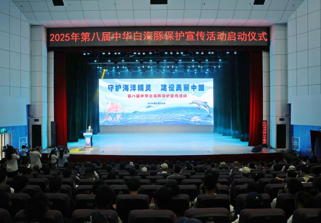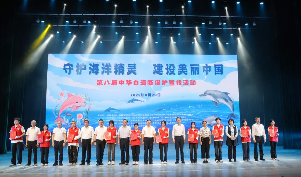 2025年4月20日,以“守護海洋精靈,建設美麗中國”為主題的第八屆中華白海豚保護宣傳活動在湖光校區中歌實驗劇場舉行。農業農村部漁政保障中心副主任郭云峰,中國漁業協會會長崔利鋒,學校黨委常委、副校長魯義善出席活動,中國野生動物保護協會水生野生動物保護分會會長李彥亮主持活動。來自政府部門、水生生物自然保護區、科研機構、高等院校、社會組織、企業界、新聞媒體以及志愿者團體的近500名代表參加活動。