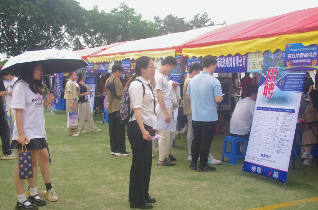 5月25日,由廣東海洋大學聯合深圳市寶安區人力資源局、江門市人力資源和社會保障局、江門市新會區人力資源和社會保障局、湛江市霞山區人力資源和社會保障局共同主辦的2025屆畢業生“百日沖刺促就業”校園招聘活動在學校湖光校區東區運動場舉行。