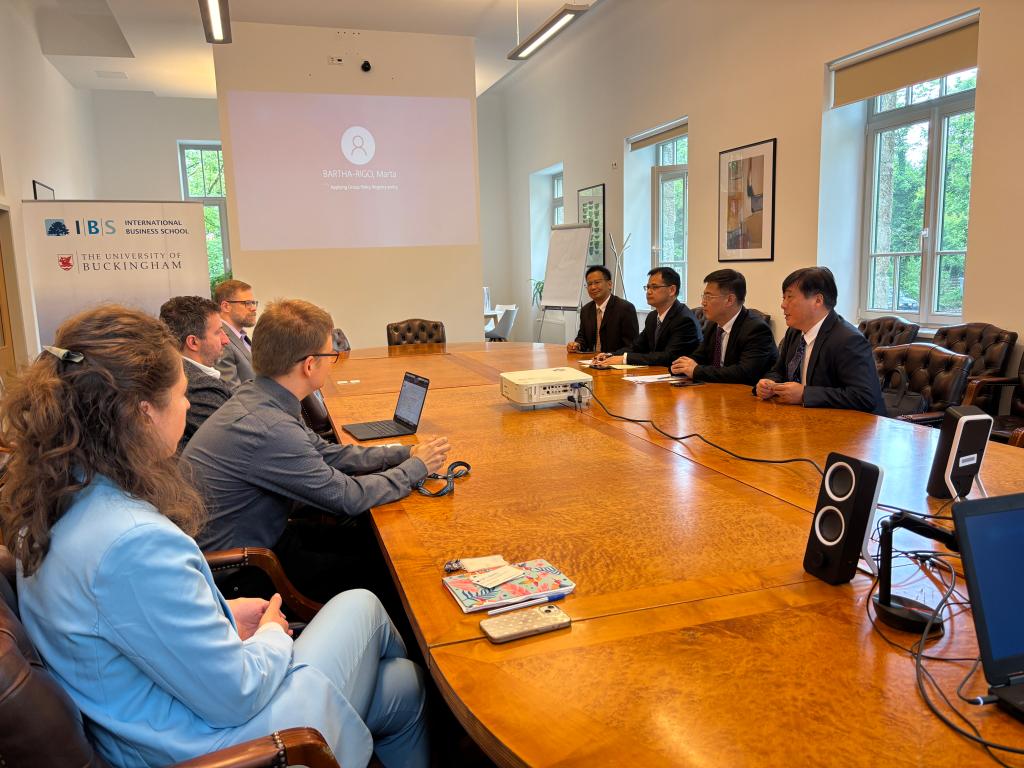 在訪問匈牙利布達佩斯IBS國際商學院時,楊洲一行與該校總裁László Láng Jr.和校長Márton Rácz進行了座談交流。雙方就兩校管理學科相關專業在本科、碩士、博士各層次人才聯合培養、專業教師互訪及教學與科研合作等方面進行了細致溝通與商討,并達成共識。