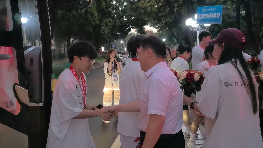 5月28日,海大女籃一行奪冠后返校,受到學校師生熱烈歡迎。學校領導在行政樓迎接球隊成員,并為海大女籃舉辦載譽凱旋歡迎儀式。學校黨委書記楊洲出席會議并致辭,黨委副書記譚平、海大女籃隊員及教練員、湛江校友分會輪值會長李亞德,學院領導及師生代表參加活動,儀式由副校長鄧逢光主持。