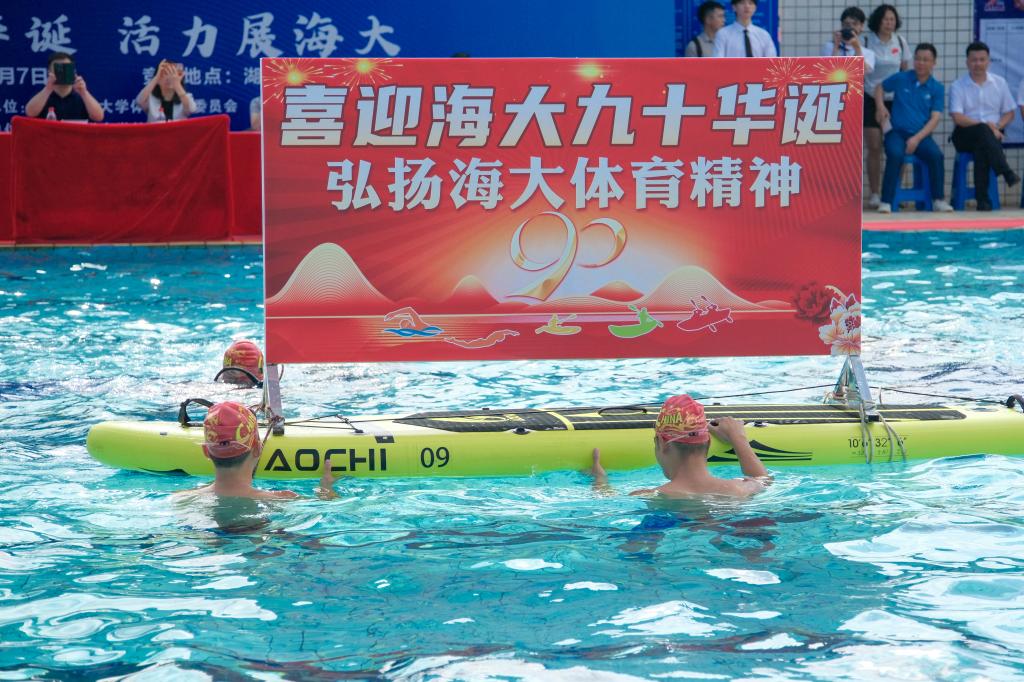 譚平在開幕詞中代表學校對本次運動會籌備工作付出辛勤勞動的老師、同學們表示誠摯的感謝,向全體運動員、裁判員及工作人員致以誠摯的問候,并對海大女籃在中國大學生籃球聯賽二級聯賽中奪得全國總決賽冠軍,我校在全國和省市的救生、帆船、龍舟等賽事中取得的優異成績給予充分的肯定。“體育強則國家強,國運興則體育興”,譚平指出,游泳體育項目是力量的角逐、技巧的展現,更是意志的磨礪、精神的升華。學校舉辦游泳運動會,既是落實全民健身國家戰略、建設健康海大的生動實踐,也是展現我校體育活力、凝聚海大奮進力量的重要平臺。譚平希望每一位運動員都能賽出風格,賽出水平,賽出友誼。