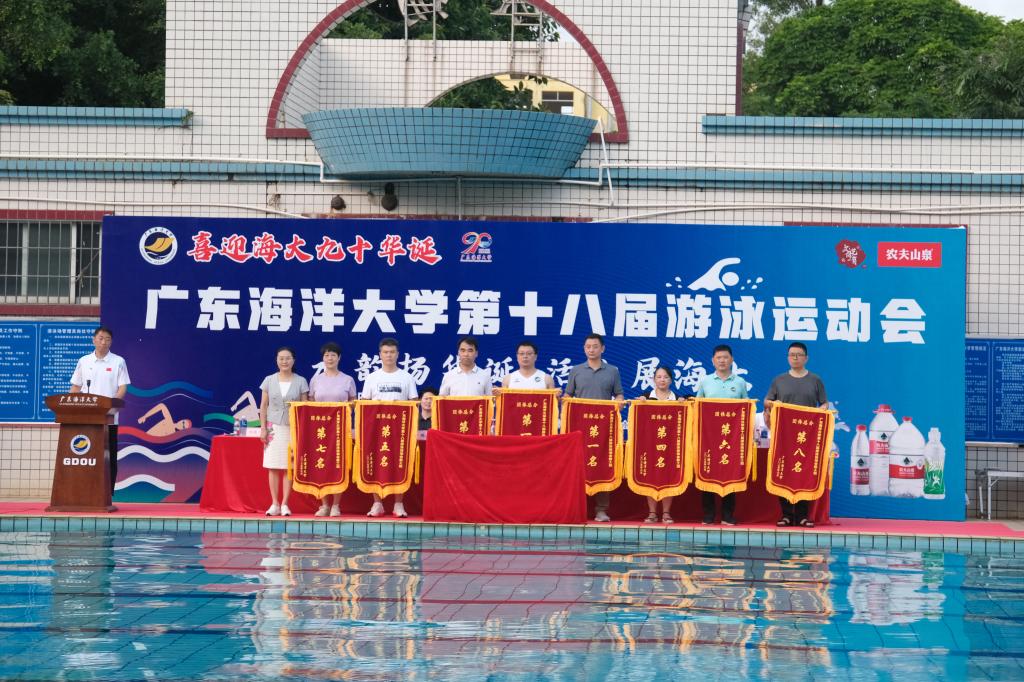 為喜迎學校90周年校慶,豐富校園體育文化,彰顯我校水上體育運動優勢和海洋特色,營造良好的全民健身氛圍,6月7日,學校在湖光校區游泳場舉行第十八屆游泳運動會。本屆運動會以“水韻揚華誕 活力展海大”為主題,分別設學生組34個、教工組23個比賽項目,共吸引了18支學生代表隊、21支教職工代表隊、近2000名師生運動員同臺競技,創歷屆規模之最。學校黨委書記楊洲,黨委副書記譚平,黨委常委、副校長鄧逢光出席開幕式,學生工作部、教育工會、校團委、體育與休閑學院等單位部門負責人出席儀式。開幕式由鄧逢光主持。