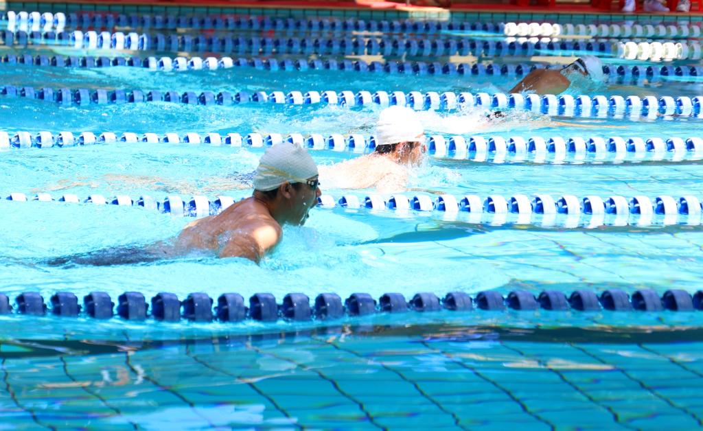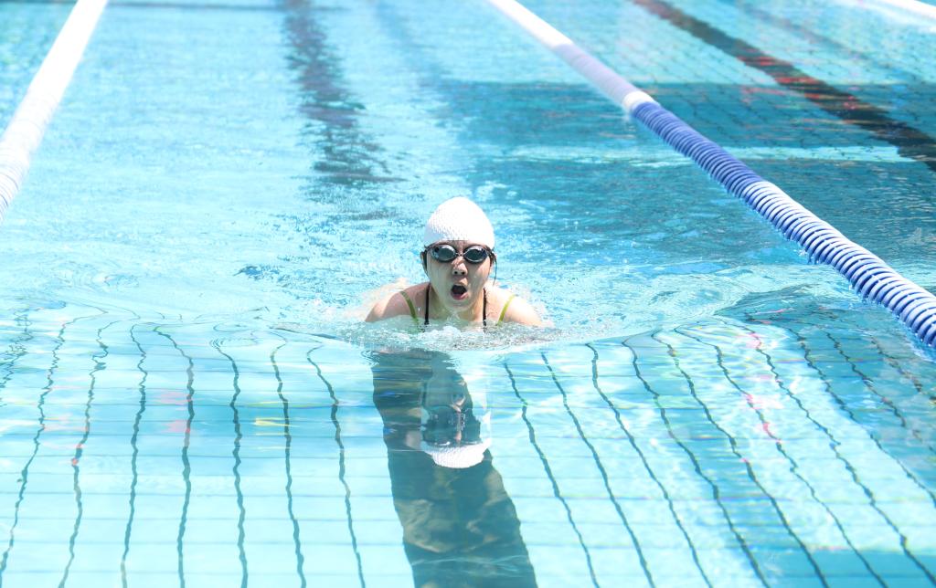 本屆游泳運動會設有蛙泳50米、100米、200米,自由泳50米、100米個人項目,同時設置蛙泳與自由泳接力等集體項目。賽場上,隨發令槍響,運動員們將身體拉成一道流線,奮然扎進水中。蹬腿時水花翻涌,雙腿如蛙足般矯健,箭矢般奮力沖向終點。賽場上,運動員劈波斬浪,展現出頑強拼搏的體育精神。觀賽場上,觀眾高呼吶喊,揮舞著雙臂,為運動員們加油打氣。激烈的競爭、自我突破的歡欣、圈圈的漣漪充斥著水波蕩漾的游泳池。