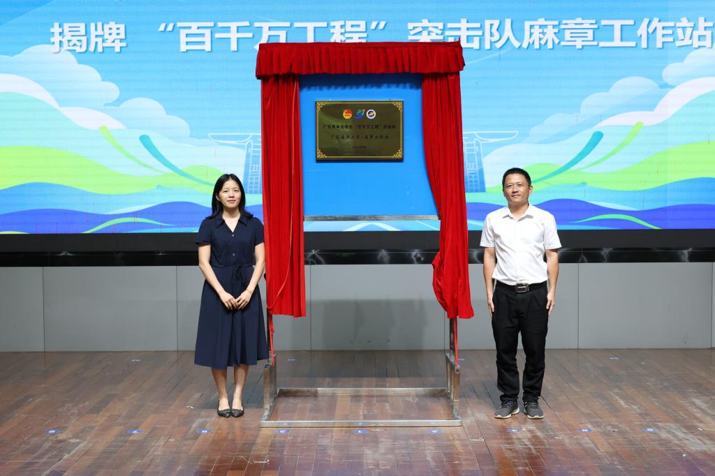 法政學(xué)院鄭綺雯同學(xué)作為實踐團(tuán)隊代表宣誓,號召同學(xué)們以飽滿的熱情、嚴(yán)謹(jǐn)?shù)膽B(tài)度和扎實的作風(fēng)完成任務(wù)。校團(tuán)委副書記、“雙百行動”學(xué)校駐麻章區(qū)服務(wù)隊隊長趙裕彬與團(tuán)麻章區(qū)委書記陳月明共同為“百千萬工程”突擊隊麻章工作站揭牌,標(biāo)志著校地長效服務(wù)機制的新探索。