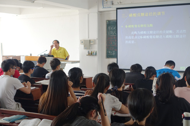 為提高本科生教學質量、發揮優秀教師的教學示范作用。5月11日上午,在實驗教學部副主任張炎生的主持下,實驗教學部開展了由劉展雄老師主講的《生物化學》公開課授課觀摩活動。督導組康信煌老師蒞臨指導,部領導和部分老師參加了公開課觀摩活動。