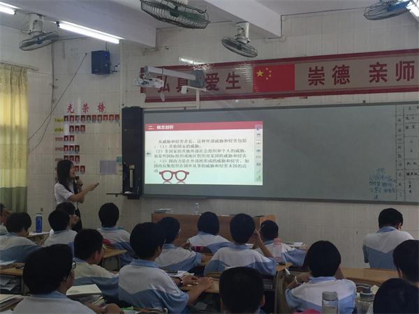 本次普法義教的主題是“守護國家安全,爭當愛國先鋒”。在嶺師附中陳主任的安排下,普法義教志愿者共分成七組,每組主講人一名,助教一名,對初中一年級共計7個班,約350個中學生進行了授課。而授課內容主要有國家安全教育和《國家安全法》。而為了保證普法義教授課的效果和質量,學院義教主講人均經過“普法之星”大賽選拔而產生,且受到嶺師附中的領導老師的好評。