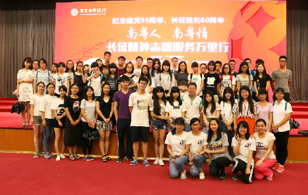 6月23日上午,由廣東南粵銀行主辦的“紀(jì)念紅軍長征勝利80周年報告會”在湛江市會展中心報告廳舉行。校團委尹喜書記、海濱校區(qū)團委書記楊震老師帶隊與50余名海濱校區(qū)的同學(xué)一起聆聽了報告。
