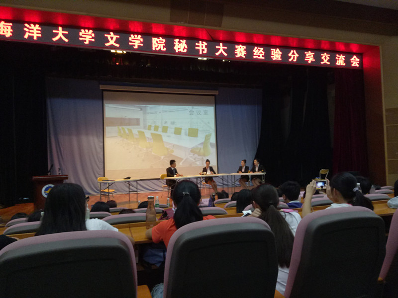 6月21日下午,文學院在學校湖光校區多功能廳舉行了秘書職業技能大賽參賽經驗分享及交流會。本次交流會由參加第六屆全國商務秘書職業技能大賽以及參加第四屆廣東省秘書職業技能大賽中獲得佳績的八名13級文秘專業的同學進行經驗分享交流。文學院黨委書記張兵、副書記董萍,文學院副院長孫長軍、姚國軍,秘書學專業負責人汪東發老師以及秘書學專業的學生參與了本次交流會。