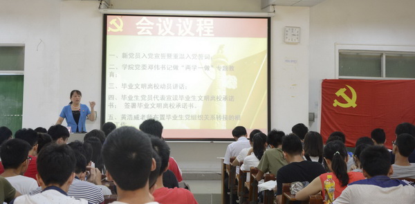 會(huì)上,畢業(yè)生黨員代表工管1121班邱春娜代表全體畢業(yè)生黨員宣讀了《工程學(xué)院2016屆畢業(yè)生黨員文明離校承諾書》,全體畢業(yè)生黨員簽署了承諾書。最后,輔導(dǎo)員黃浩威就畢業(yè)生黨員組織關(guān)系轉(zhuǎn)接相關(guān)事宜和畢業(yè)生預(yù)備黨員如何轉(zhuǎn)正等問題進(jìn)行了講解和安排。