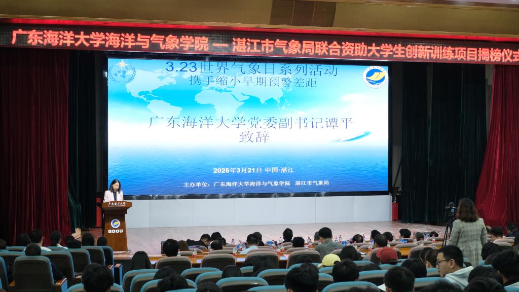 3月21日,海洋與氣象學院聯(lián)合湛江市氣象局、湛江市氣象學會舉辦第65個“世界氣象日”系列慶祝活動,活動涵蓋我校海洋與氣象學院——湛江市氣象局聯(lián)合資助大學生創(chuàng)新訓練計劃項目揭榜儀式、世界氣象日主題學術(shù)交流會,以及世界氣象日主題晚會。