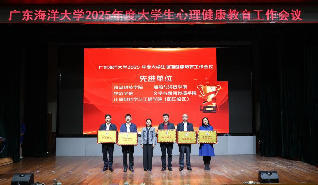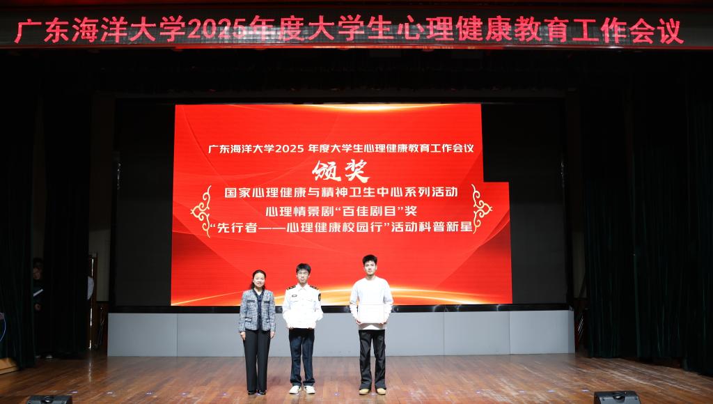 為總結經驗、表彰先進,譚平分別為食品科技學院、經濟學院、船舶與海運學院、文學與新聞傳播學院、計算機科學與工程學院(陽江校區)等5個先進單位、丁雪倩等34名先進個人,以及廣東省525心理健康系列活動獲獎代表、國家心理健康與精神衛生中心的心理情景劇“百佳劇目”獎和“先行者——心理健康校園行”活動科普新星獲獎同學代表頒獎。會后,心理情景劇“百佳劇目”《我不是學神》在舞臺上進行精彩的展演。