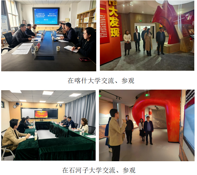 在調研交流過程中,喀什大學副校長羅浩波、石河子大學國際教育中心處長王冰一分別會見了調研組一行。調研組圍繞中亞優質生源培育與科技合作、辦學質量提升路徑、黨建引領與國際化融合、學科交叉與語言賦能、統戰與民族團結實踐等內容,分別與兩校進行了深入的探討,并針對搭建合作平臺、開展中亞留學生培養合作,中外合作辦學機制創新、加強校-企-校聯合培養提升跨文化溝通能力、國際化人才培養與思政教育雙向賦能等交流議題交換了意見。與會方就推動“專業+俄語”復合型課程設計,培養既懂俄語又掌握專業技術的復合型人才,促進黨建與國際學生工作融合,提升師生參與度與獲得感等內容達成了共識。
