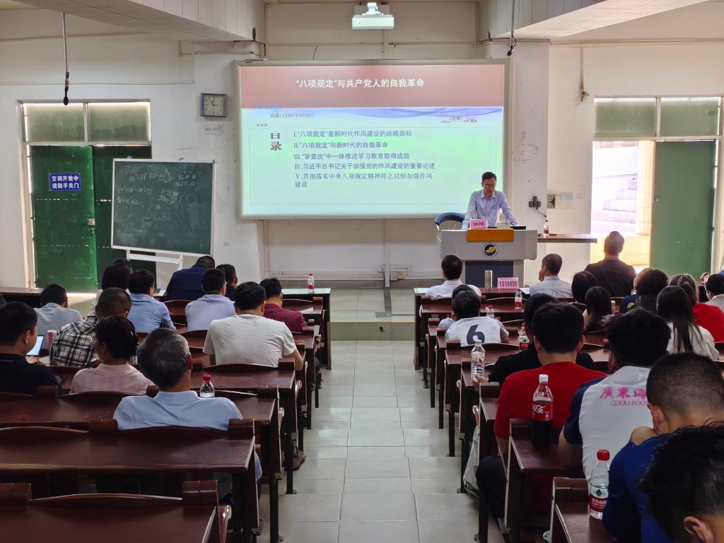 為深入學習貫徹習近平總書記關于加強黨的作風建設的重要論述和中央八項規定及其實施細則精神,推動深入貫徹中央八項規定精神學習教育走深走實,4月9日,體育與休閑學院聯合化學與環境學院舉行深入貫徹中央八項規定精神學習教育輔導報告會暨黨委理論學習中心組學習擴大會。化學與環境學院、體育與休閑學院領導班子成員和全體教職工參加會議,會議由王明對、何國明主持。