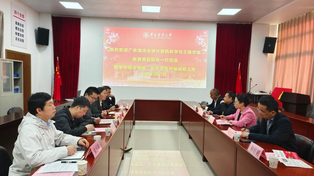 調研團隊先后走訪了華南農業大學、廣東工業大學、廣東技術師范大學等高校的計算機相關學院,圍繞學科發展、科研創新、人才培養等主題展開深入交流。在座談會上,雙方就高水平學科平臺建設、科研團隊培育、交叉學科融合等議題交換意見,并針對人工智能、大數據、海洋信息技術等前沿領域的研究方向展開探討。華南農業大學數學與信息學院、軟件學院分享了其在國家一流專業、產學研一體化機制等方面的實踐經驗。趙男男表示,通過校際聯動,學院進一步明確了服務海洋強國戰略的特色發展路徑,未來將依托學科優勢,深化與兄弟院校的科研協作與資源共享。