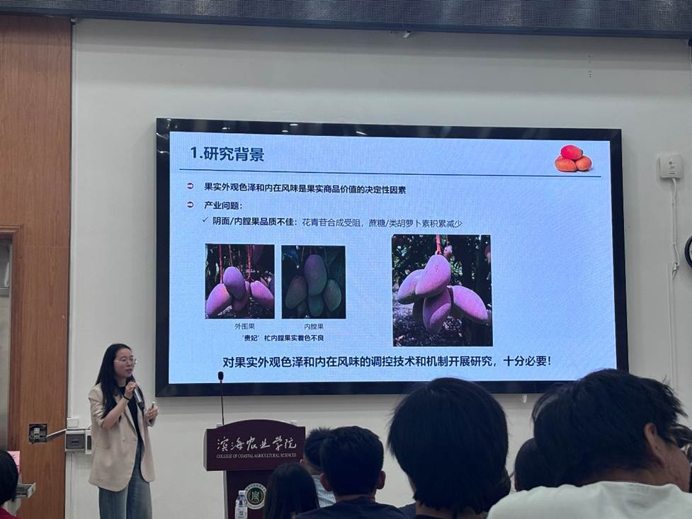 4月29日,應濱海農業學院邀請,海南大學錢敏杰教授與浙江大學倪雋蓓副研究員在湖光校區興農樓109室作學術報告。報告會由學院黨委副書記王繼全主持,園藝系教師、研究生及本科生代表等100余人參會。