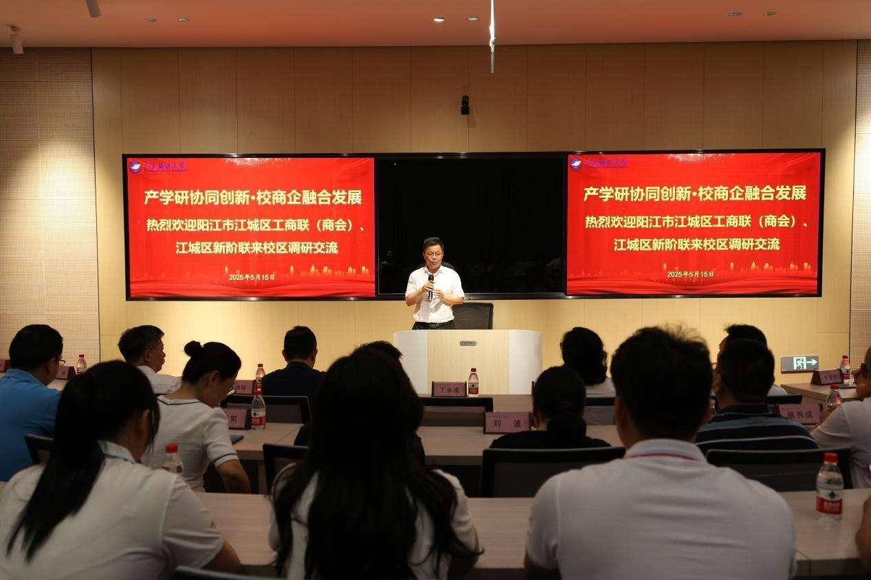5月15日下午,陽江市江城區委統戰部副部長、江城區工商聯黨組書記、常務副主席黃冬華率領江城區工商聯、新階聯80余位企業家代表到校區開展“產學研協同創新·校商企融合發展”主題調研交流活動。校區黨委副書記丁永成、麥冬寧,各學院、部門負責人參加調研。