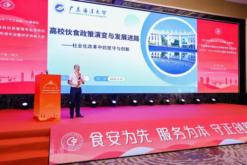 5月15日,廣東省高校后勤協(xié)會(huì)伙食管理專業(yè)委員會(huì)2024-2025年度年會(huì)暨評(píng)優(yōu)表彰大會(huì)在廣東江門召開。此次大會(huì)匯聚了全省高校后勤領(lǐng)域的260余位專家學(xué)者、行業(yè)同仁以及后勤服務(wù)企業(yè)代表,圍繞高校后勤管理創(chuàng)新與高質(zhì)量發(fā)展展開深度研討。學(xué)校黨委常委、副校長(zhǎng)鄧逢光作為特邀嘉賓,在會(huì)上作題為《高校伙食政策演變與發(fā)展進(jìn)路——社會(huì)化改革中的堅(jiān)守與創(chuàng)新》的專題報(bào)告,引發(fā)與會(huì)者熱烈反響。