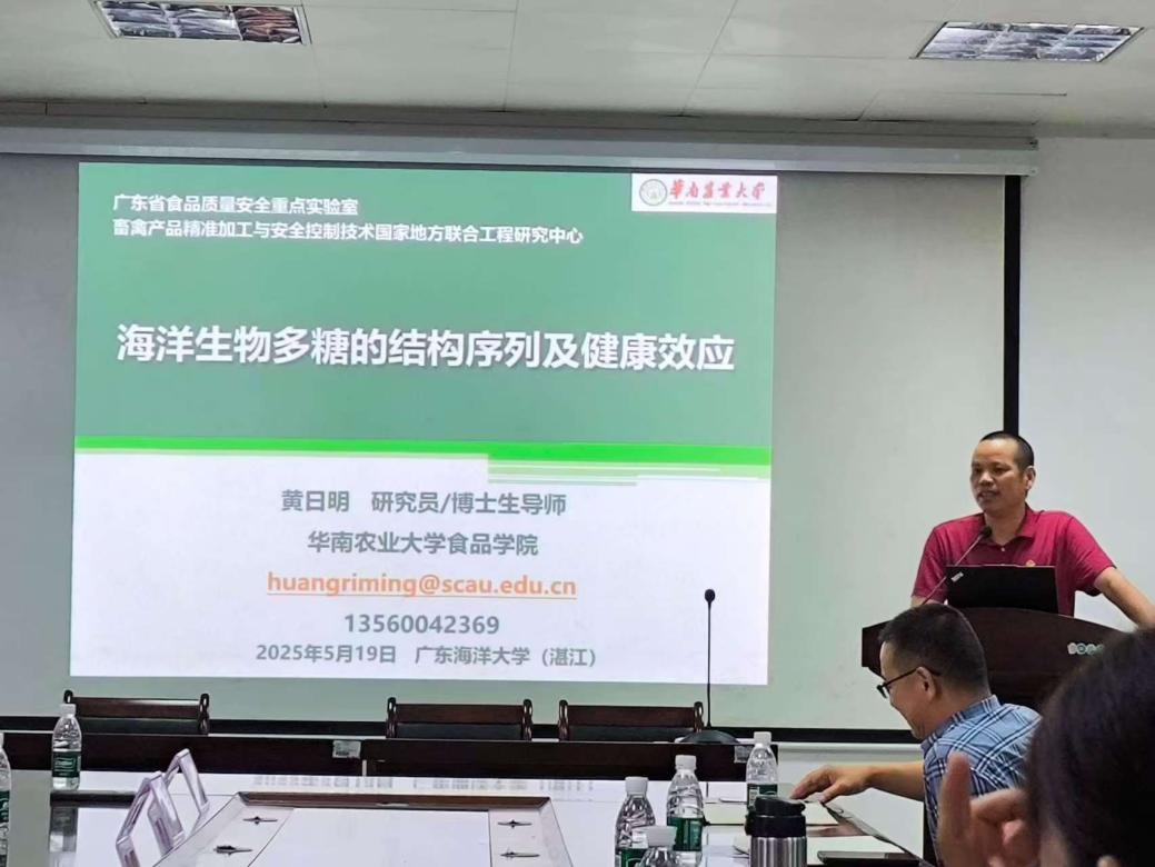 5月19日下午,北師香港浸會(huì)大學(xué)徐寶軍教授和華南農(nóng)業(yè)大學(xué)黃日明教授應(yīng)邀到食品科技學(xué)院,在望海樓A105會(huì)議室分別作了題為《大豆異黃酮genistein通過(guò)PI3K/Akt信號(hào)通路改善高糖神經(jīng)細(xì)胞損傷的分子機(jī)制研究》和《海洋生物多糖的結(jié)構(gòu)序列及健康效應(yīng)》的專題學(xué)術(shù)報(bào)告。報(bào)告會(huì)由副院長(zhǎng)高加龍主持,鐘賽意教授、張翼教授、陳雷教授、張杰良教授及海洋功能因子與營(yíng)養(yǎng)健康創(chuàng)新團(tuán)隊(duì)部分教師與研究生共同聆聽了報(bào)告。