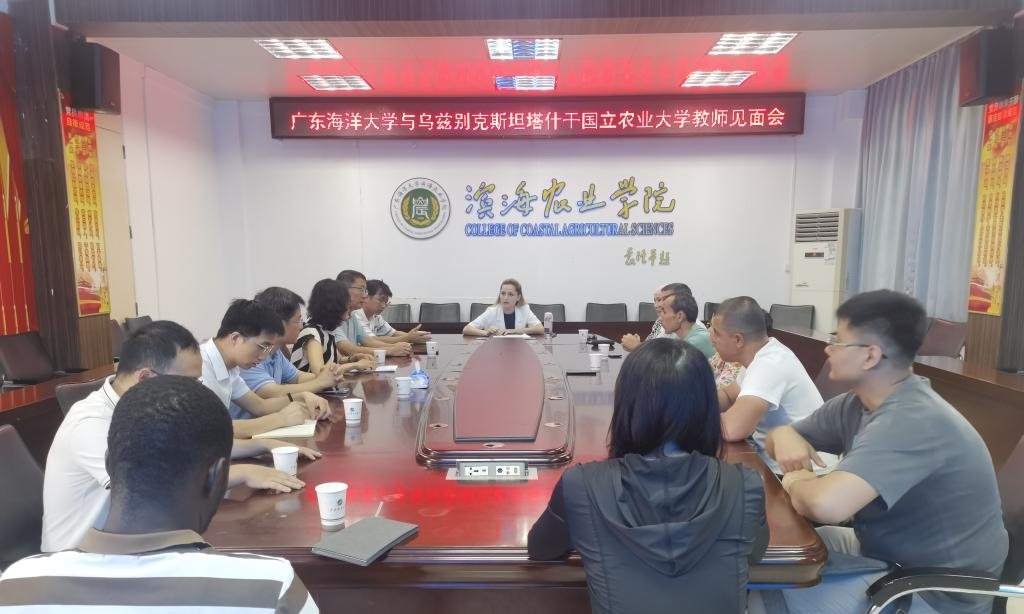 依托中國-烏茲別克斯坦鹽堿地開發利用聯合實驗室項目,6月1日,我校與烏茲別克斯坦塔什干國立農業大學教師見面會暨第一期培訓開班儀式在湖光校區興農樓419會議室舉行。會議由濱海農業學院院長馬驛主持,國際交流合作部副部長黎國丹出席會議。來自塔什干國立農業大學、濱海農業學院及水產學院的16名教師代表參加了本次交流活動。