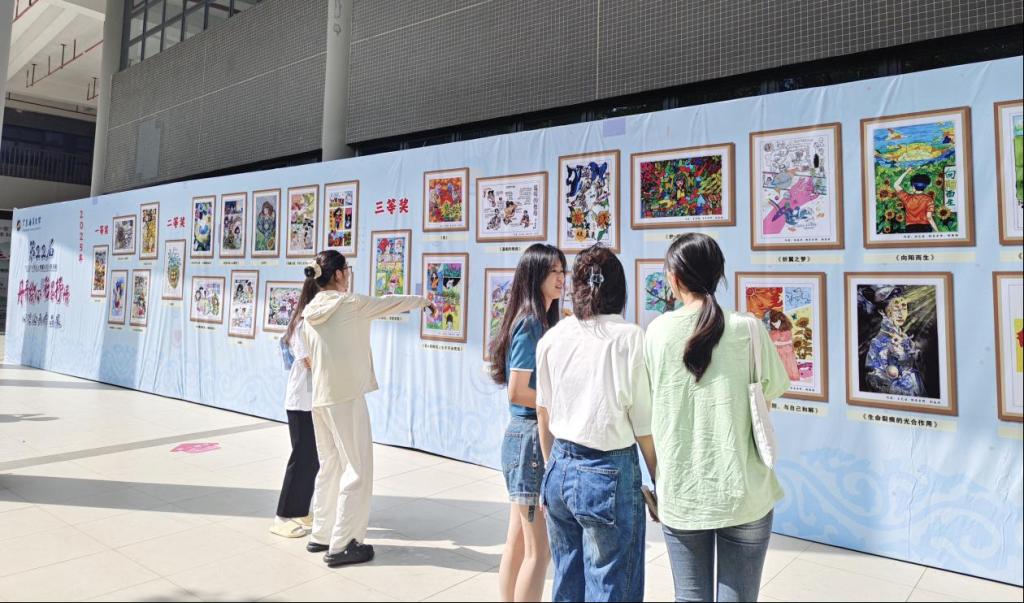 5月25日,部分優秀作品在湖光校區西區大學生活動中心集中展覽。畫作吸引了眾多師生駐足品鑒,現場圍繞藝術與心理健康的深度融合展開熱烈交流,氛圍溫馨。