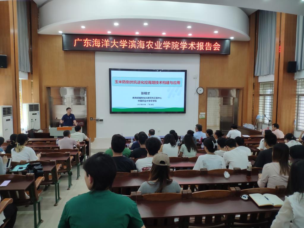 5月28日,應(yīng)作物學(xué)學(xué)科邀請(qǐng),中國(guó)農(nóng)業(yè)大學(xué)教育部植物生長(zhǎng)調(diào)節(jié)劑工程中心張明才教授在湖光校區(qū)興農(nóng)樓109室作題為《玉米防倒伏抗逆化控栽培技術(shù)構(gòu)建與應(yīng)用》的學(xué)術(shù)報(bào)告。報(bào)告會(huì)由濱海農(nóng)業(yè)學(xué)院黨委書(shū)記鄭殿峰教授主持,學(xué)院教師、研究生及本科生代表等100余人聆聽(tīng)了報(bào)告。