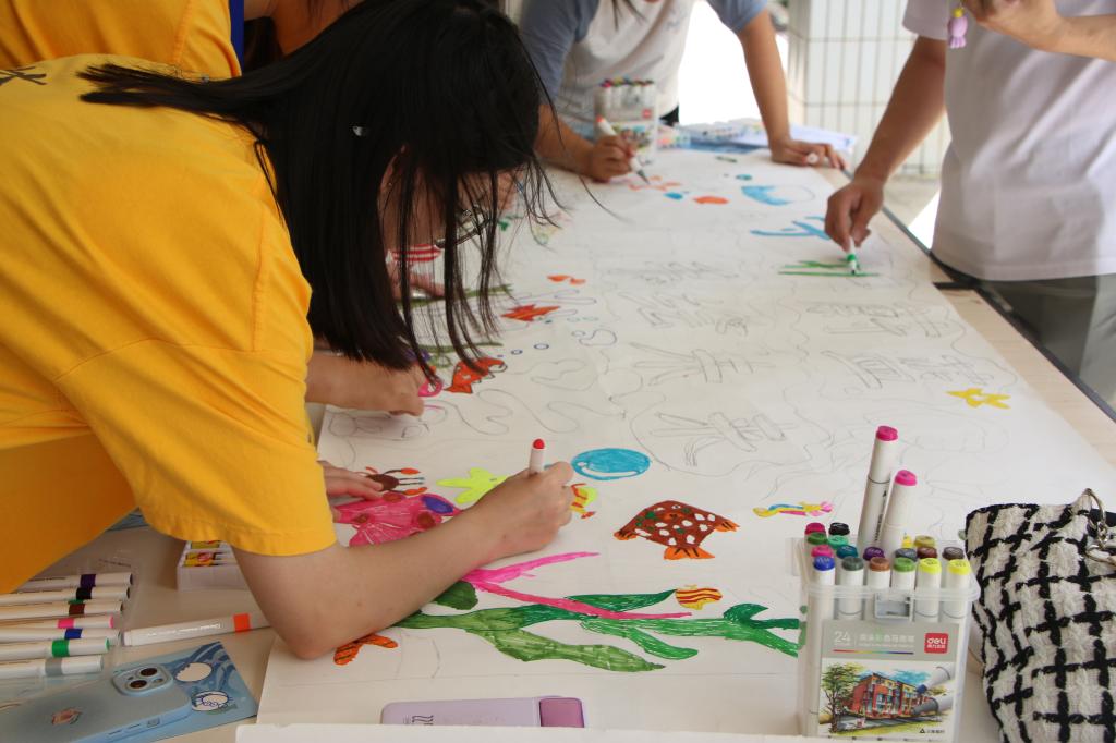 活動現場海洋文化氛圍濃厚,青年學子通過參與游戲、知識競答和藝術創作集章兌換海洋環保紀念品,在互動中感受海洋魅力,深化生態保護意識。本次活動以“海洋市集”為載體,將課堂延伸至實踐,注重提升青年學子的體驗感和參與感。通過多元互動形式,引導師生從“了解海洋”走向“守護海洋”,讓海洋文化在校園沃土中蓬勃生長、煥發新彩。