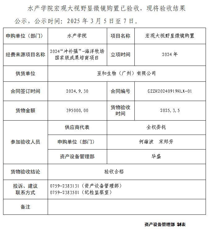 水產學院宏觀大視野顯微鏡購置驗收公示