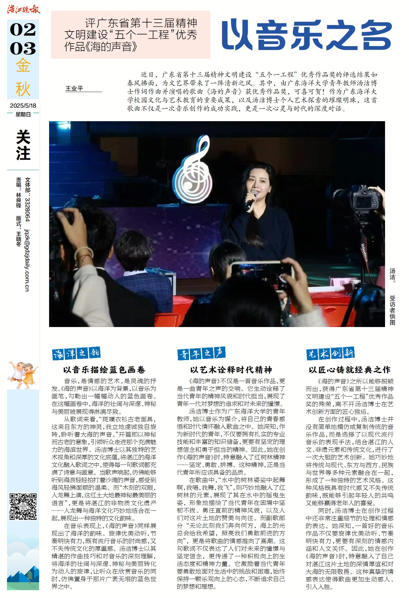 湛江晚報:以音樂之名 共譜時代華章:評廣東省第十三屆精神文明建設“五個一工程”優秀作品《海的聲音》