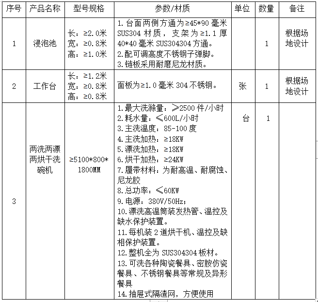 說明:除洗碗機參數、材質不得改變之外,其他設備均需要根據場地情況和采購人要求重新設計。
