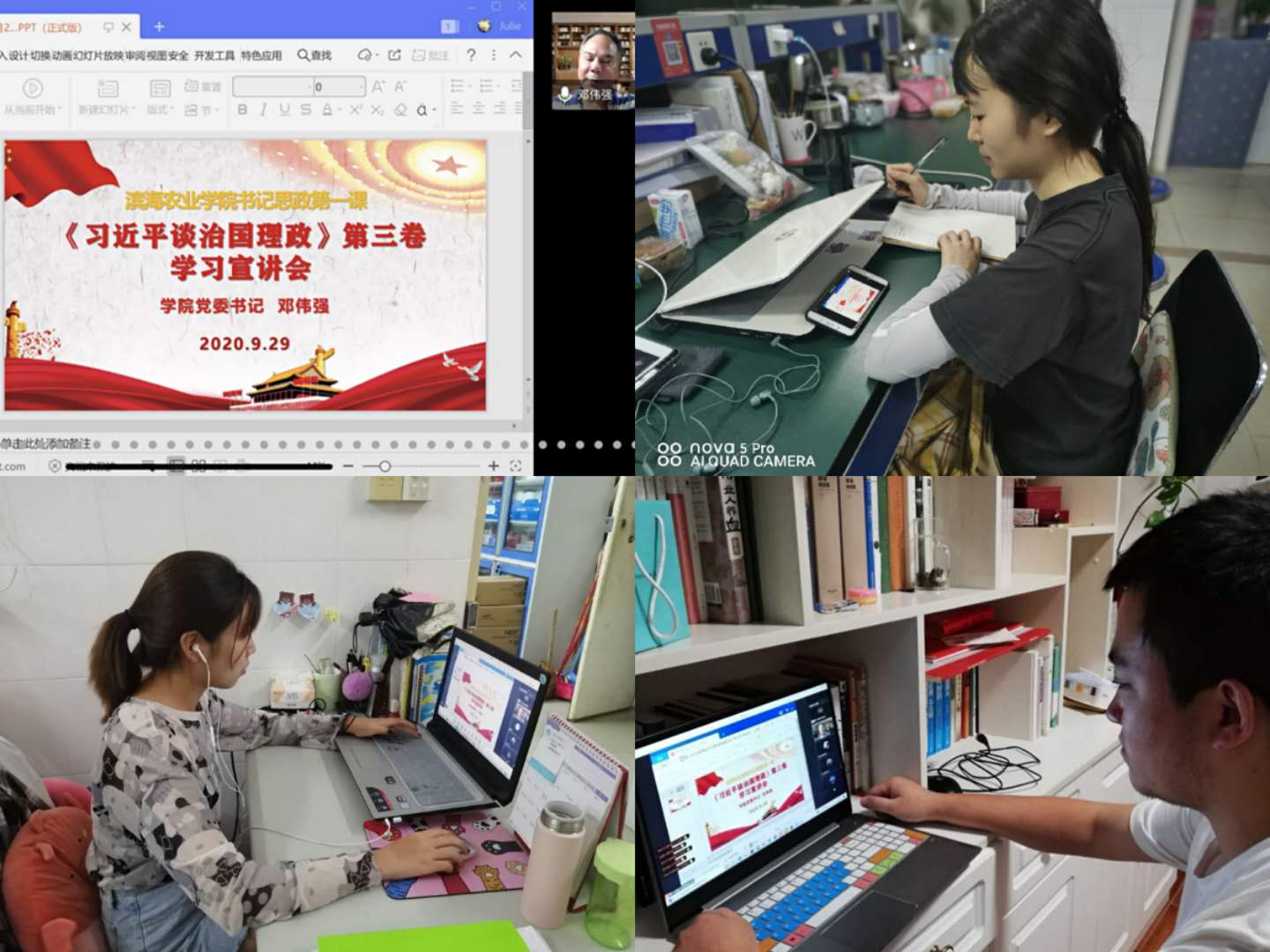 9月29日晚,濱海農業學院新學期“思政第一課”在騰訊會議平臺“云端”開講,由學院黨委書記鄧偉強主講,學生黨支部書記、全體學生黨員、發展對象、入黨積極分子共269人參與了本次課程學習。