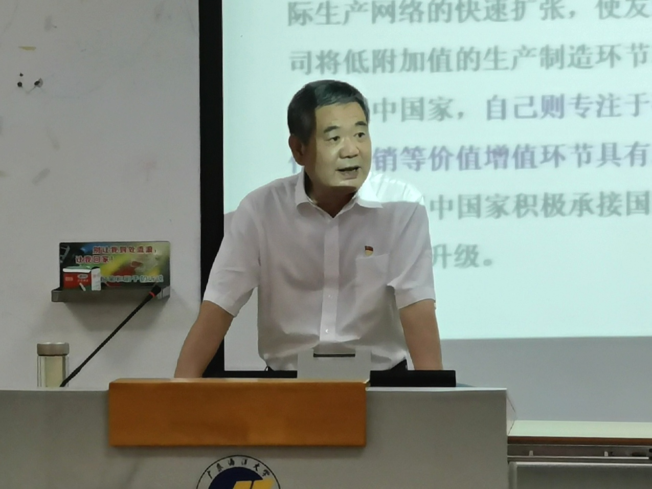 9月23日下午,居占杰從戰后世界經濟格局演變講起,詳細闡述了當今世界形勢;用大量數據講述了新中國經濟發展取得的成就、中國經濟發展對世界經濟發展的貢獻,以及在糧食安全、信息安全、衛生安全、能源安全、氣候變化、科技創新、國際秩序、全球治理等世界性問題中體現的中國智慧和方案。他強調,當今世界正處于百年未有之大變局,面對百年未有之大變局,面對當前治理難題和發展困境,人類社會迫切需要建立新的發展觀,構建更加公正合理的國際體系和國際秩序。中國提出一帶一路倡議、構建新型國際關系、推動構建人類命運共同體等,為維護世界和平、促進共同發展做出了重大貢獻。