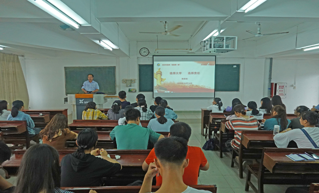 10月14日下午,文學與新聞傳播學院黨委書記阮彭林和院長孫長軍,在湖光校區教學主樓703室為學院2020級全體班委上“思政第一課”。